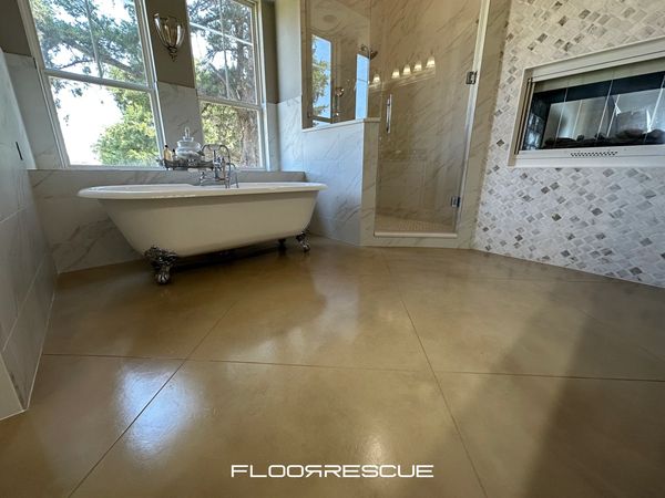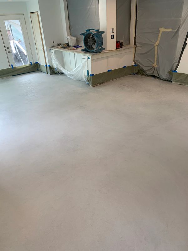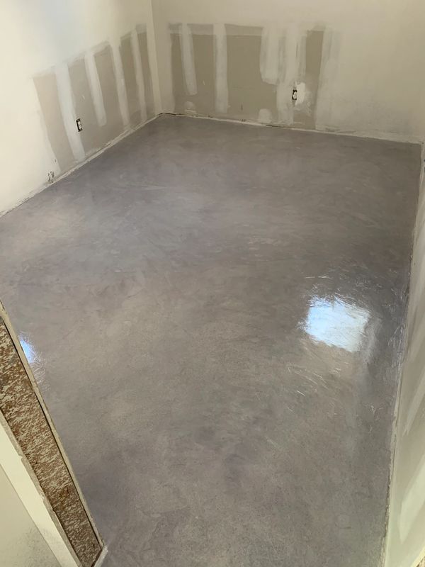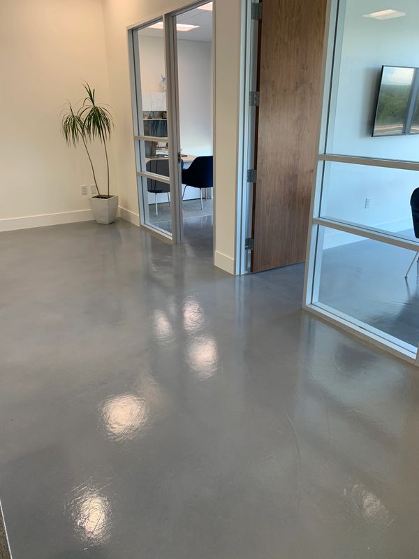 Microcement Overlays by FloorRescue for commercial retail, office spaces, and residential. These concrete overlay systems are thin and allow old concrete a fresh makeover for a new concrete look for floors or walls.