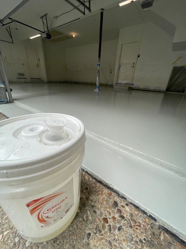 Urethane Coatings for garages and shop floors in Dallas available in clear or pigmented in gloss and satin.