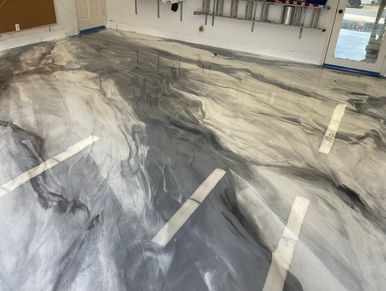 Epoxy Floors for garages and shop floors, single color solutions or multi-colors available, base-coats for our other resinous flooring systems, 100% solids epoxy resin flooring systems for concrete.