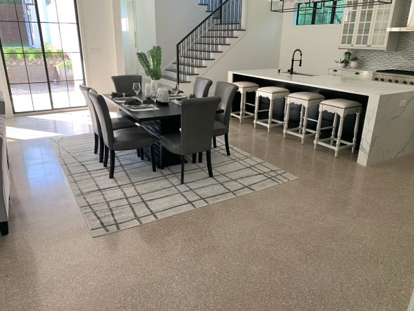 Meeting the needs of interior designers and decorators throughout Texas with specialty epoxy flooring and polished or stained concrete flooring to help complement the style of the home like this modern farmhouse in West Texas. Suited to your design and color palette, we have the right flooring solution to fit the design needs and budget for the project in Dallas fort Worth all of Texas.