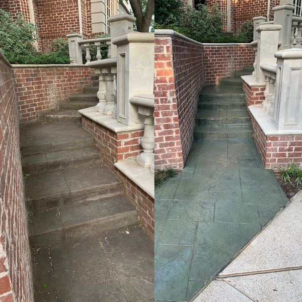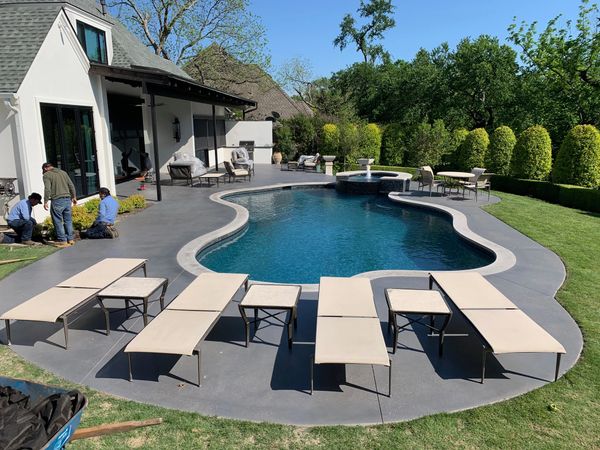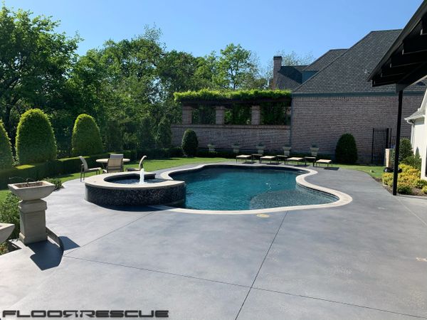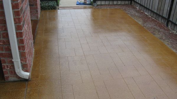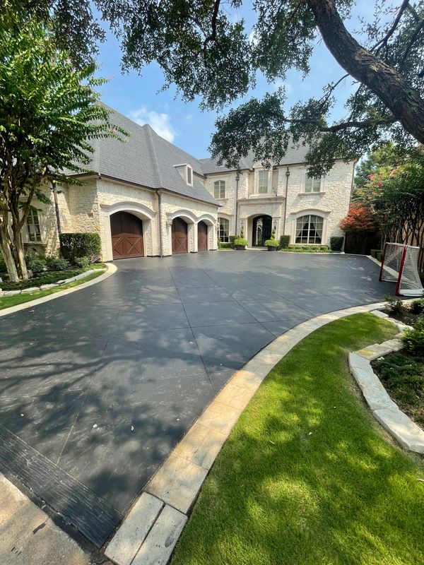 Outdoor decorative concrete projects including ALL color restorations, stamped concrete, concrete staining, re sealing old worn concrete, pressure washing concrete in Dallas, concrete resurfacing