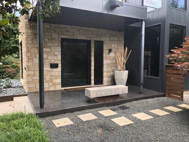 Custom Scored Design, Honed and Sealed Concrete Porches