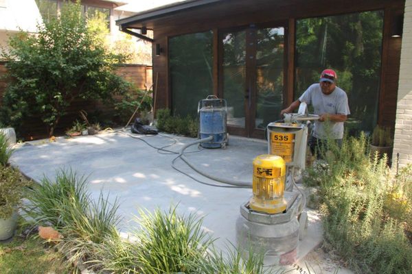 exterior stained concrete restorations and color changes, concrete grinding and sealing in Dallas