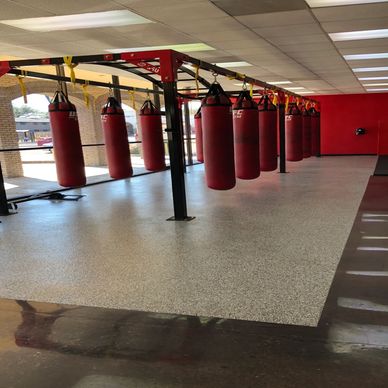 Epoxy Chip Flake Floors with Poly-Aspartic for Boxing Workout Gym Dallas