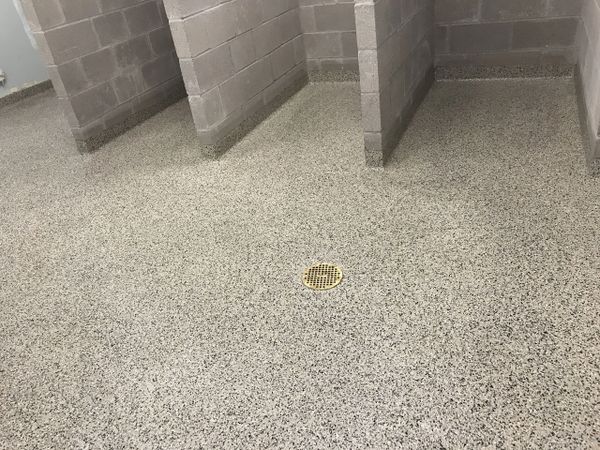 Epoxy Flake Systems for locker rooms and wet areas. Water-proof, slip-resistant, and anti-microbial making floors safe and easy to clean.